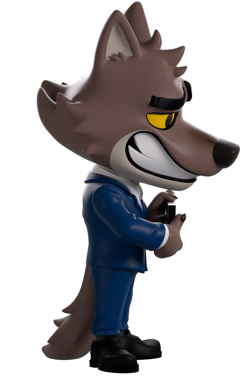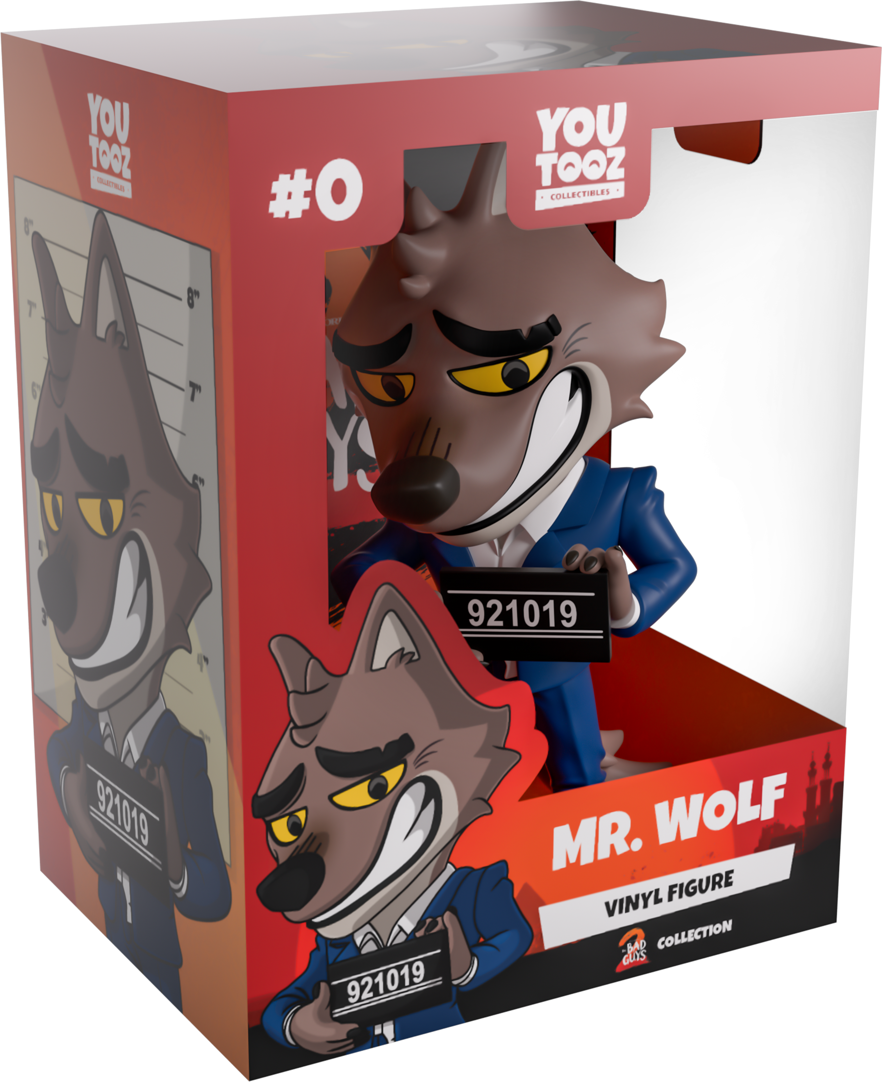 Don't mind the mugshot, this guy doesn't normally get caught! Mr. Wolf is back at youtooz for his vinyl debut! Standing at 5.2 inches tall and dressed handsomely in a blue suit and white shirt as he holds a police department slate for his mug shot, Mr. Wolf is blushing with a shy smile across his face as he's just a little embarrassed for getting booked! The exterior of his packaging has been illustrated to show a car racing down the road in front of an orange sunset, while the interior is a textured orange with the Bad Guys 2 logo. The protective sleeve features a red sky over the city in the distance as his figure can be seen through the large clear window at its front. This collectible ships in a matte, embossed, protective outer sleeve and a custom-sized plastic protector for maximum protection during shipping.