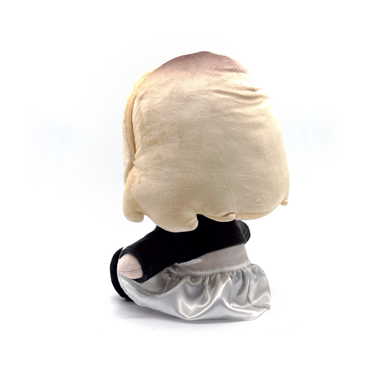 Calling all short kings, the woman, or doll of your dreams has arrived this Halloween season with an all-new look! Tiffany Valentine is making her debut as a Youtooz plush and she looks killer! Sitting at 9 inches tall with her feet kicked forward, Tiff is dressed in black boots under a white wedding gown along with an edgy black jacket and a yellow chain necklace that says "Tiff" around her neck. With platinum blonde hair that has dark roots falling down to her shoulders and framing her face, she has an evil smirk as a dark smokey eye is paired with a dark lip. This plush is packed to the seams with 100% PP cotton and is made of normal and sublimated minky materials, felt, and satin, perfect for cuddling or serving killer looks with!