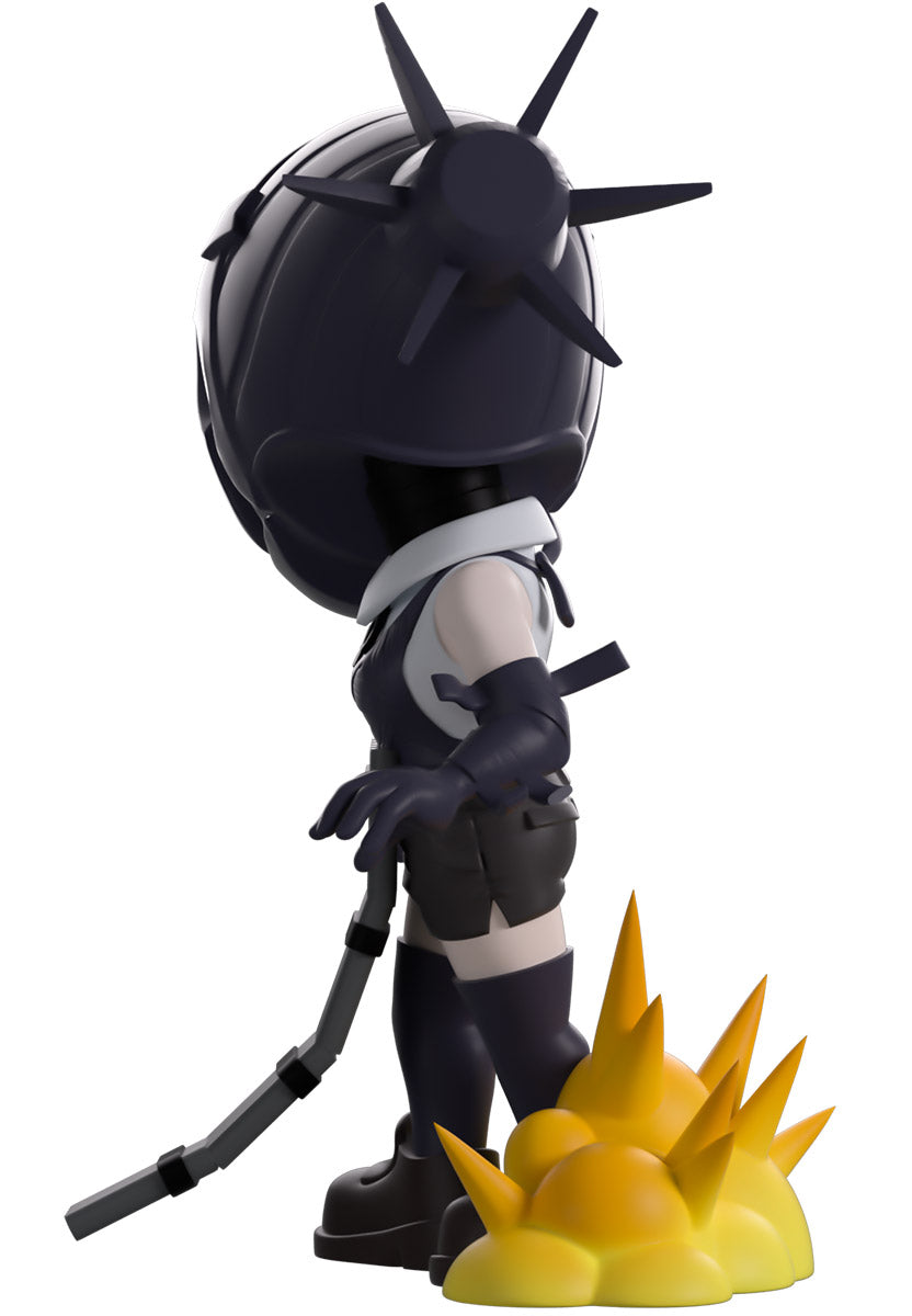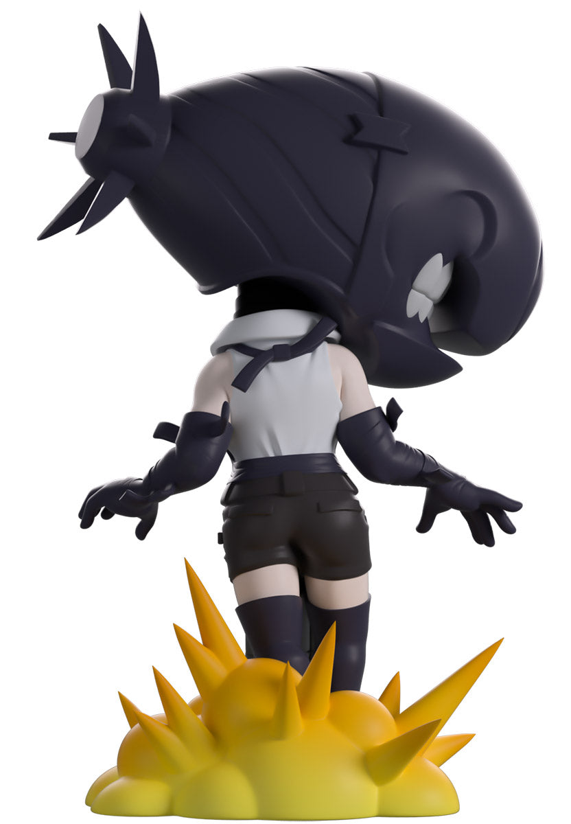 An explosion this catastrophic could only be caused by Bomb! And she’s detonated her way into Youtooz for her own vinyl debut! Standing at 4 inches tall, with the front of her atomic bomb shaped head splitting at the bottom to form an elongated mouth that ends in exposed teeth, thick rifling twists around the back of her narrow head as sharp fins poke out from the end. Wearing a sleeveless white shirt that has a black bow hanging from the collar, as detonation cord wraps around her chest and arms, a long apron made of dynamite hangs from her waist over shorts and knee-high socks as a vibrant yellow and orange explosion bursts out from behind her feet. The exterior of her lilac packaging is stamped with pink kanji and splattered in a teal spray, which continues onto the vibrant pink interior. The protective sleeve then shows a Bomb in front of the same splatter, which bleeds onto the lilac background as her figure can be seen through the large clear window at the packaging’s front. This collectible ships in a matte, embossed, protective outer sleeve and a custom-sized plastic protector for maximum protection during shipping.