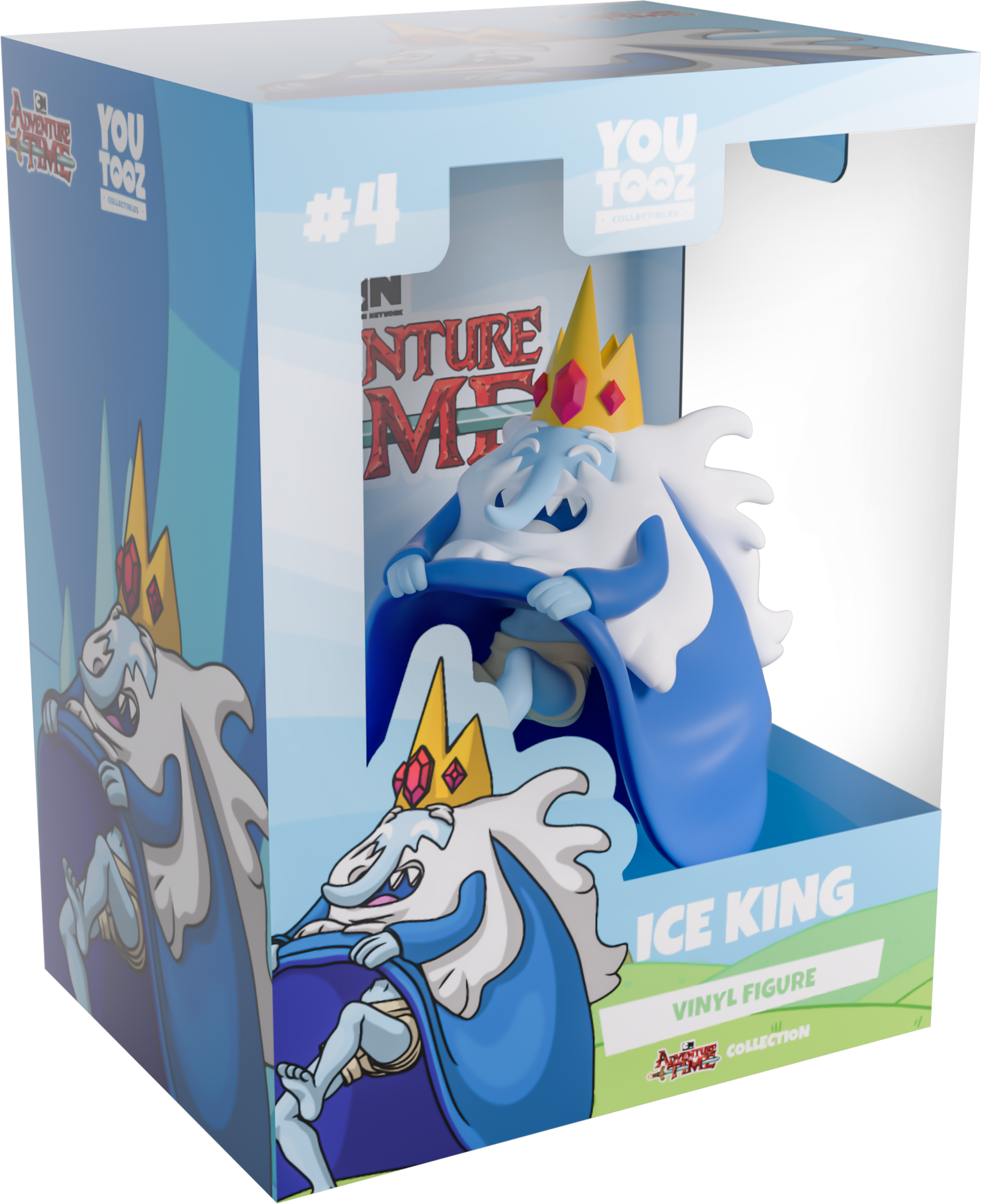 Only one thing could have the Ice King celebrating like this, it’s gotta be his Youtooz debut! Standing at 3.9 inches tall and captured mid-dance as he pulls back the rim of a billowing blue cloak to kick his skinny bare legs ecstatically, a huge sharp smile pokes through the white beard that falls down his front and connects to the shaggy mane of hair tumbling down the back as a pointed crown with red jewels rests atop his head. The exterior of his packaging sees him having the best time in his icy bedroom. While the interior is covered in a light blue and white sky which makes its way onto the protective sleeve above a rolling green field as his figure can be seen through the large clear window at the packaging’s front. This collectible ships in a matte, embossed, protective outer sleeve and a custom sized plastic protector for maximum protection during shipping.