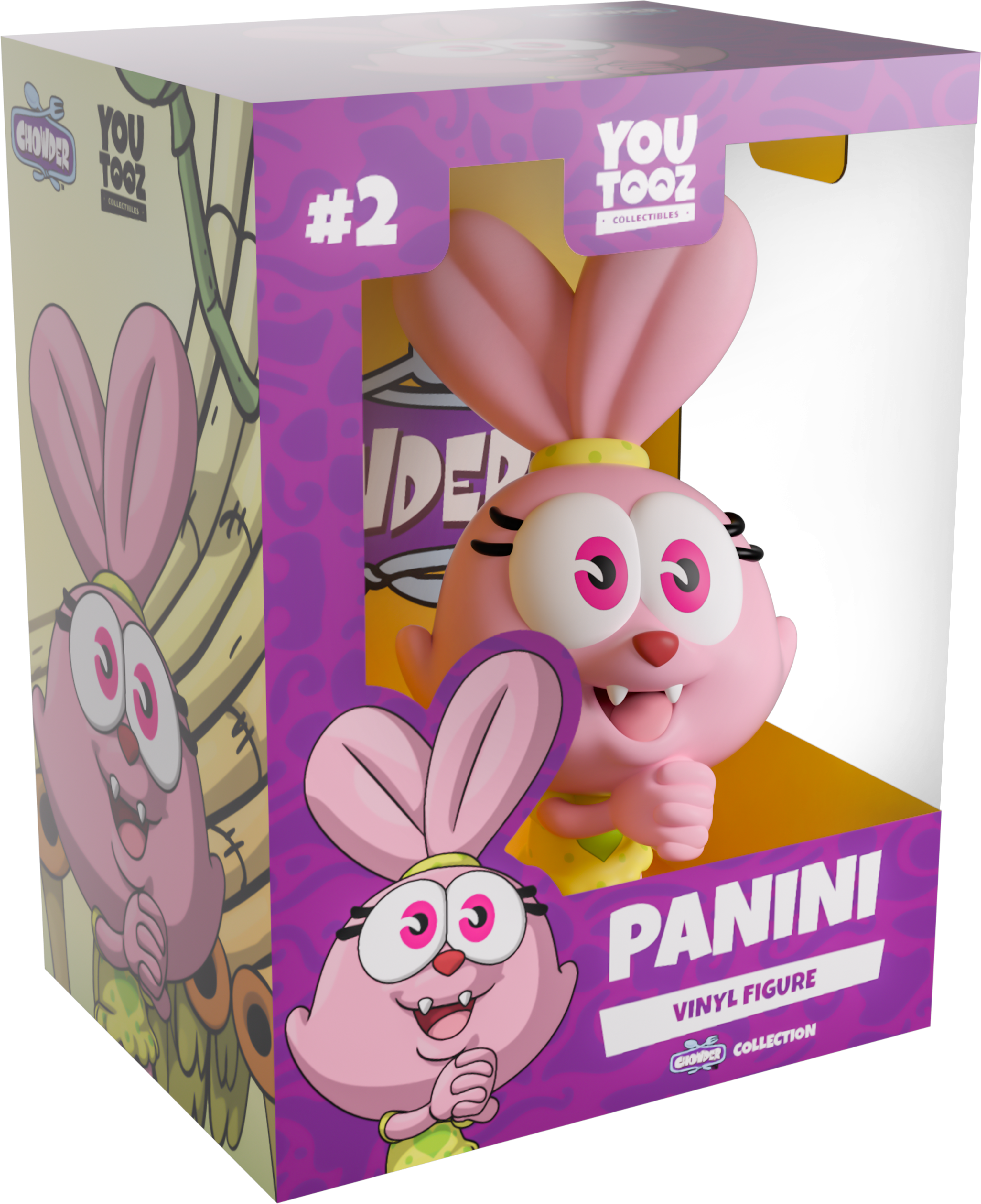 Get that bread together and lets press em, cuz Panini is here and she's coming for the love of her life, Chowder! Making her Youtooz debut to stand at 4.2 inches tall with her hands held to the front and looking up happily, Panini's dressed in an adorable yellow and green dress with matching shoes and headband that wraps around the pink bunny ears extending from the top of her head. The exterior of their packaging has been illustrated to show an aerial scene of a bar in Marzipan City, while the interior of the box is a warm yellow tone. The protective sleeve is then a vibrant close up of Chef Daal's kitchen as their figure can be seen through the large clear window at its front. This collectible ships in a matte, embossed, protective outer sleeve and a custom-sized plastic protector for maximum protection during shipping.