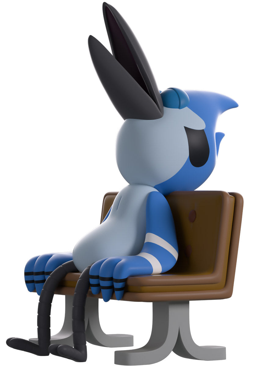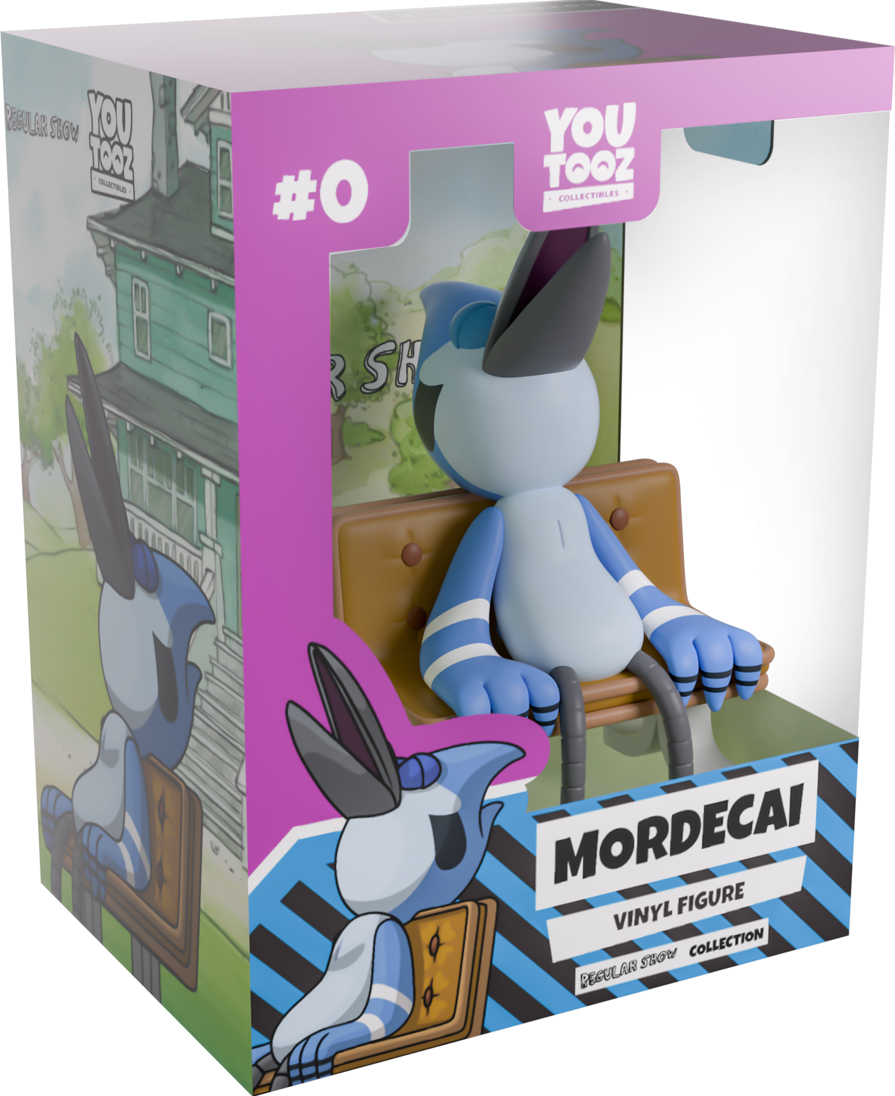 Clocking in for his shift at Youtooz National Park, Mordecai is here for a new adventure: Turning his abstract art into a collectible figure! Clocking in and immediately taking a nap on the most uncomfortable wooden bench to slump down at 4.2 inches tall, his blue feathered hands rest over the seat's edge as a long black beak opens up in front of his closed eyes and thin grey legs hang limply to the front. The windowed exterior of his packaging has been illustrated to have Mordecai still napping on that bench, while the interior is designed with an aerial shot at the iconic park they work at. The protective sleeve then sees a jagged purple and striped blue pattern over a cosmic background as his figure can see seen through the large clear window at its front. This collectible ships in a matte, embossed, protective outer sleeve and a custom-sized plastic protector for maximum protection during shipping.