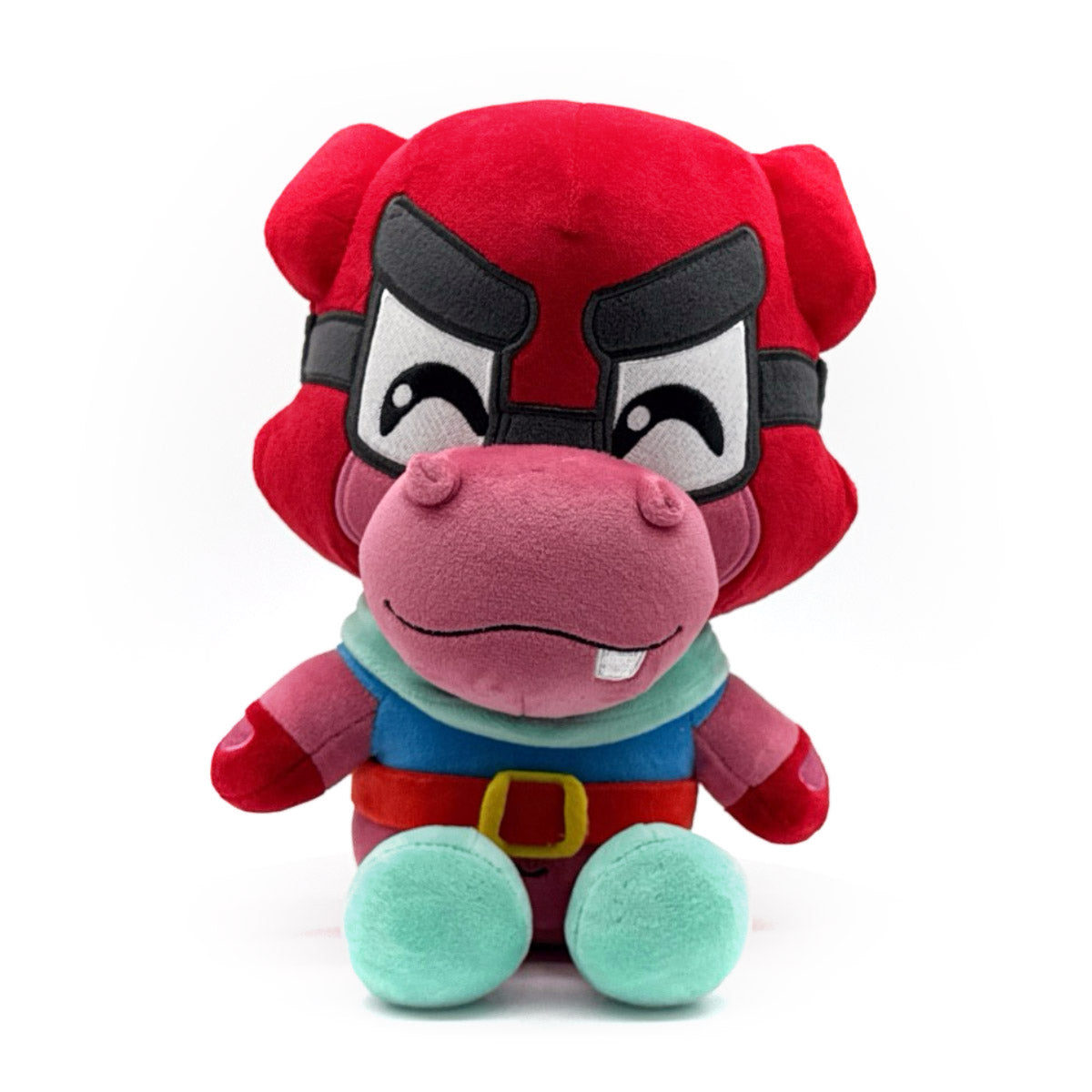 Would you take a look at that sweet van that’s just pulled up! Wait, that’s Murray’s van! Sitting at 9 inches tall, a black goggles covering his eyes and a deep red mask wrapped over his head, a single tooth hangs from his pink muzzle below small flared nostrils. With a light green scarf wrapped around his neck and a red belt with a yellow buckle around his waist, he wears a blue shirt and red gloves along with green shoes. This plush is packed to the seams with 100% PP cotton and is made of the softest minky material with accents of felt, absolutely perfect for cuddling or making a getaway with!